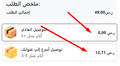 3- يمكنك اختيار نظام الشحن السريع عن طريق شركة ناقل لاستلام المنتج خلال 3 ايام ودفع مايعادل 16 ريال فرق عن شركة الشحن الاخرى مثل الصورة بالاسفل